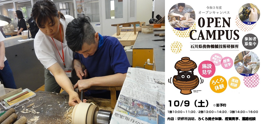 石川県挽物轆轤技術研修所のオープンキャンパスを2021年10月9日(土)に開催します。